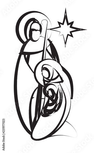 Christmas Nativity Scene Of Joseph And Mary Holding Baby Jesus Vector Illustration Sketch Doodle Hand Drawn With Black Lines Isolated On White