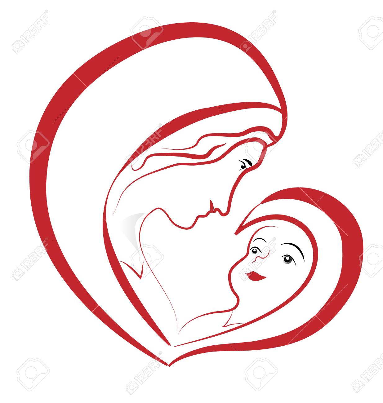 Virgin Mary And Baby Jesus Vector Drawing Illustration Design