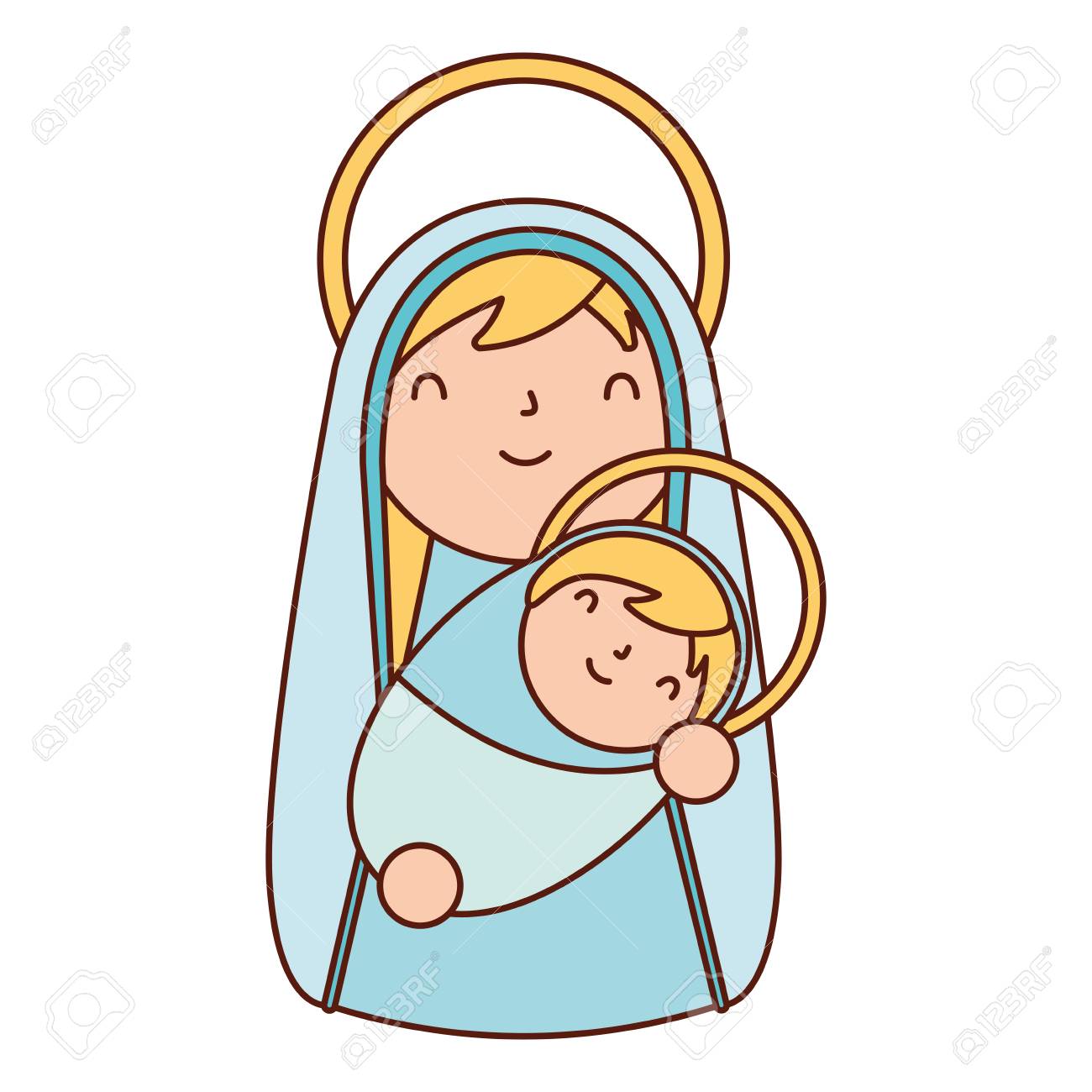 Mother Mary Holding Baby Jesus Vector Cartoon Christian