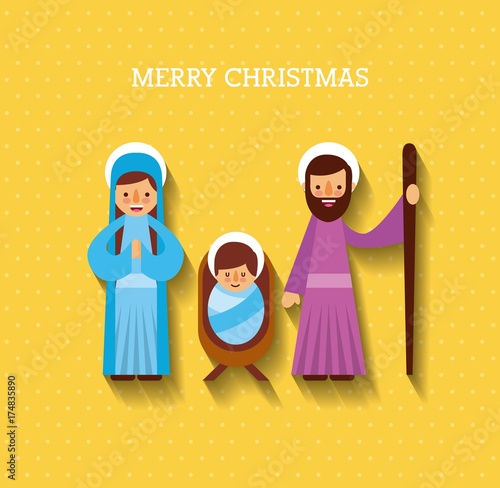 Merry Christmas Mary Joseph And Baby Jesus Christ Vector