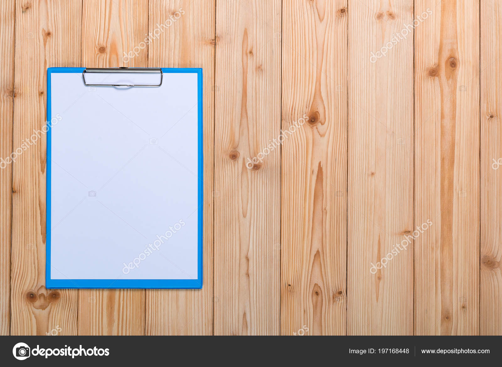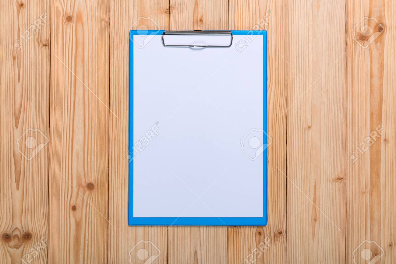 Clipboard Blank White Paper Sheet Wood Table Top View Copy