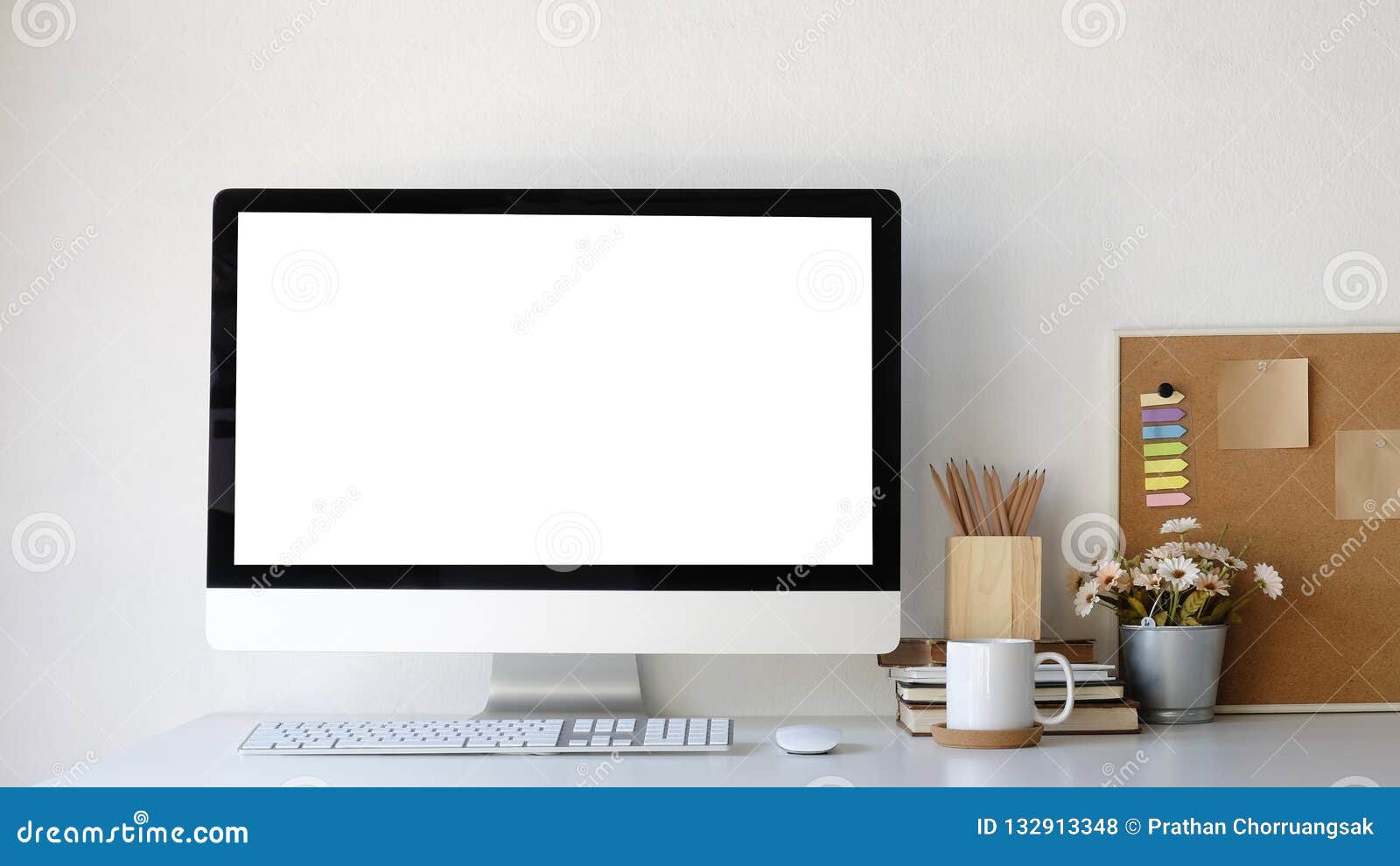 Mockup Monitor Desktop Computer And Office Supplies Stock